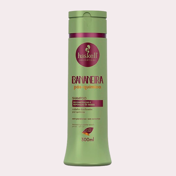 O Shampoo Bananeira Pós-Química Haskell foi desenvolvido para devolver vida aos cabelos fragilizados por processos químicos como progressivas, tinturas, descolorações, alisamentos e relaxamentos. Sua fórmula combina limpeza eficiente e delicada com um poderoso complexo de Bananeira, ativo rico em vitaminas, minerais e nutrientes essenciais para reconstruir a fibra capilar.